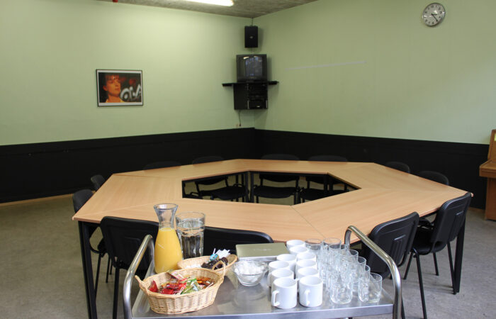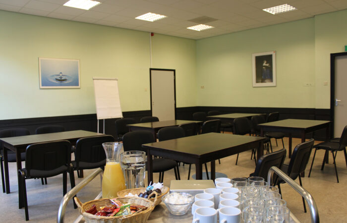 De zalen zijn volledig ingericht en van alle gemakken voorzien. Zoals, flip-over, whiteboard , internetaansluiting enz…..